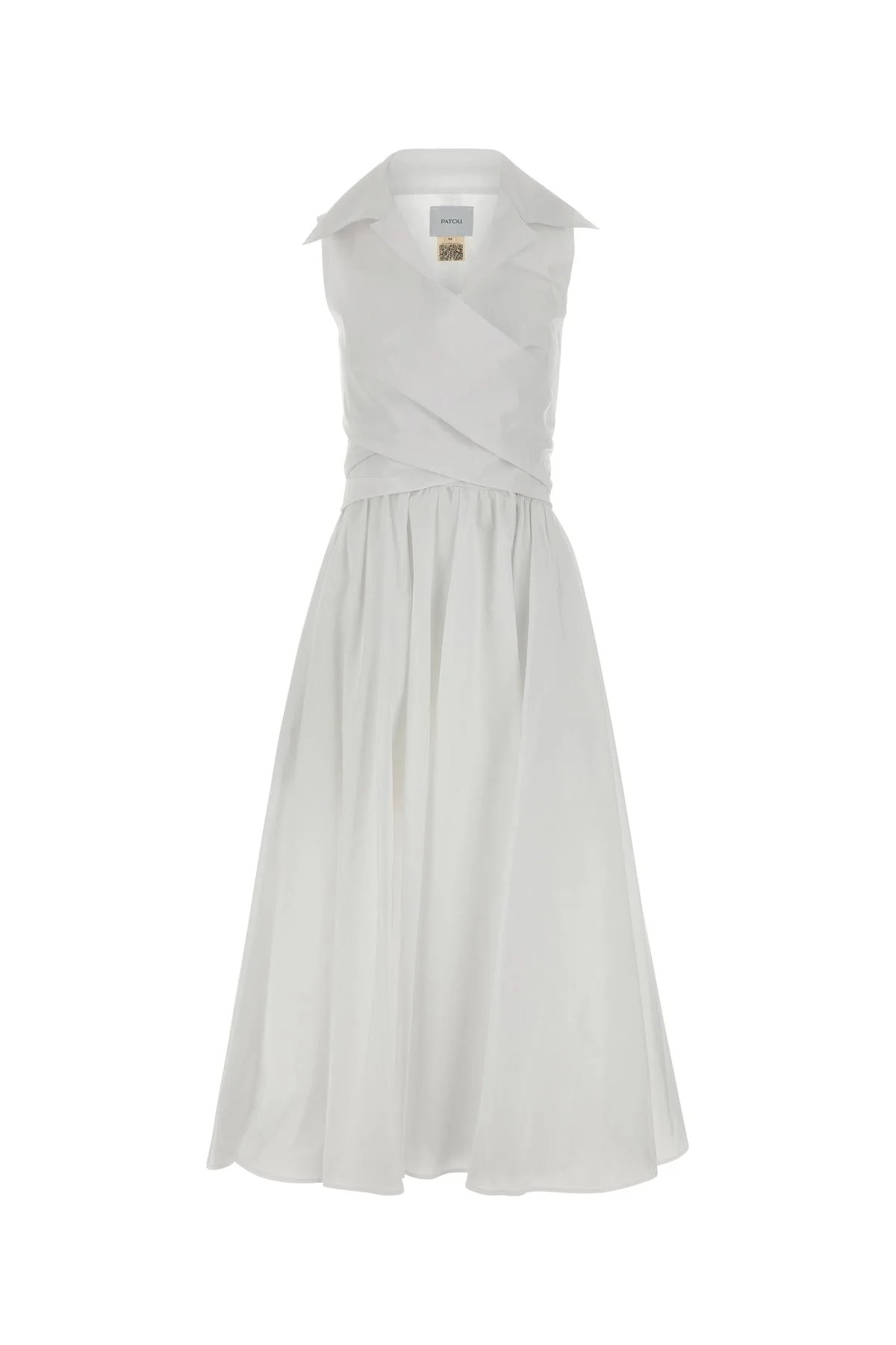 Midi-length dress realized in faille enriched by ribbons to tie at the back. - Lapels - Sleeveless - Concealed zip closure on the side - Draped skirt - Unlined DETAILS White faille dress Exterior: 100% Polyester Made in Sample size: 38