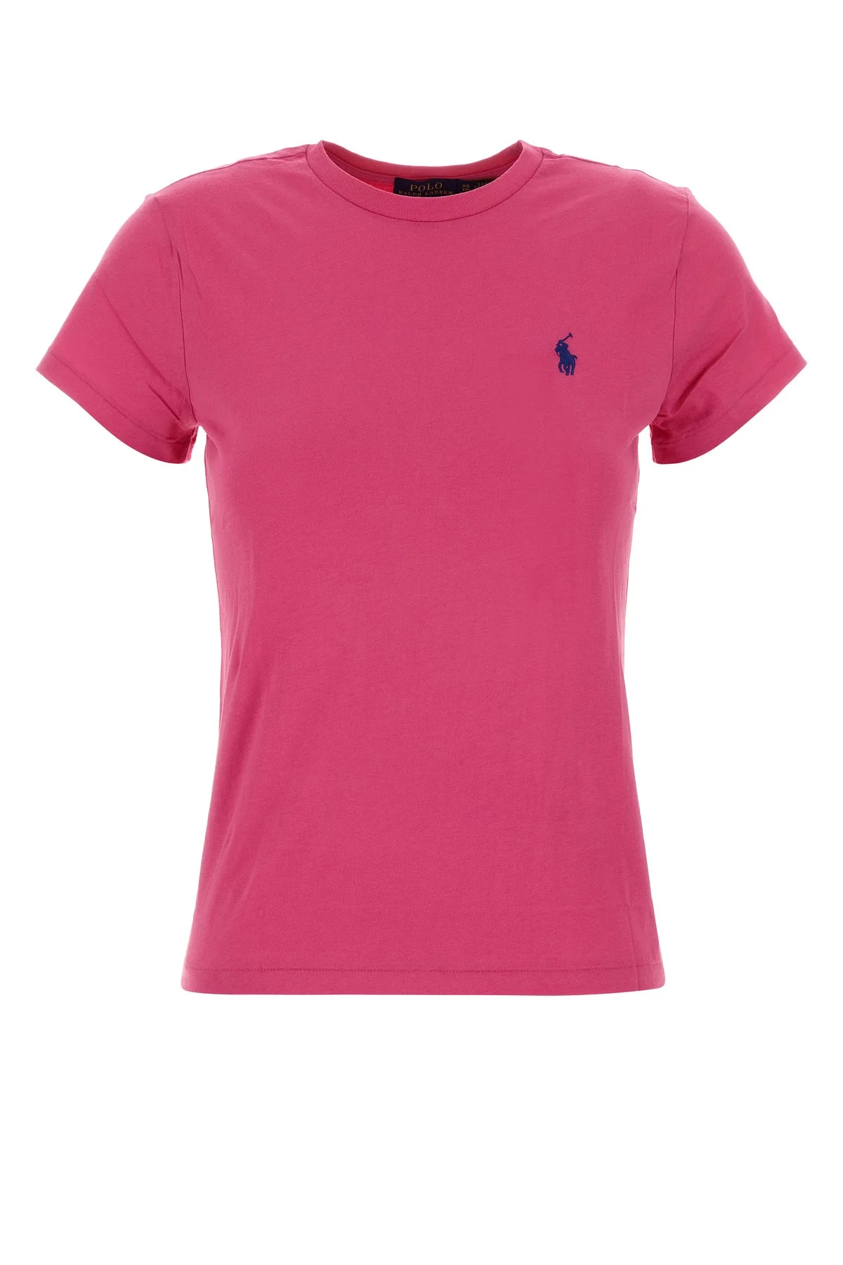 T-shirt realized in pure cotton characterized by iconic embroidered logo on the chest. - Ribbed crew-neck DETAILS Fuchsia cotton t-shirt Exterior: 100% Cotton Made in bangladesh Sample size: XS