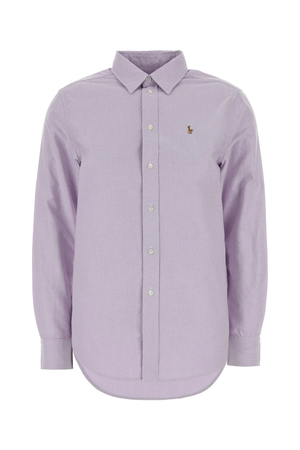 Shirt realized in pure cotton oxford characterized by iconic embroidered logo on the chest. - Short-pointed collar - Buttons closure - Rounded cuffs with button - Rear yoke DETAILS Lilac oxford shirt Exterior: 100% Cotton Made in cambodia Sample size: XS