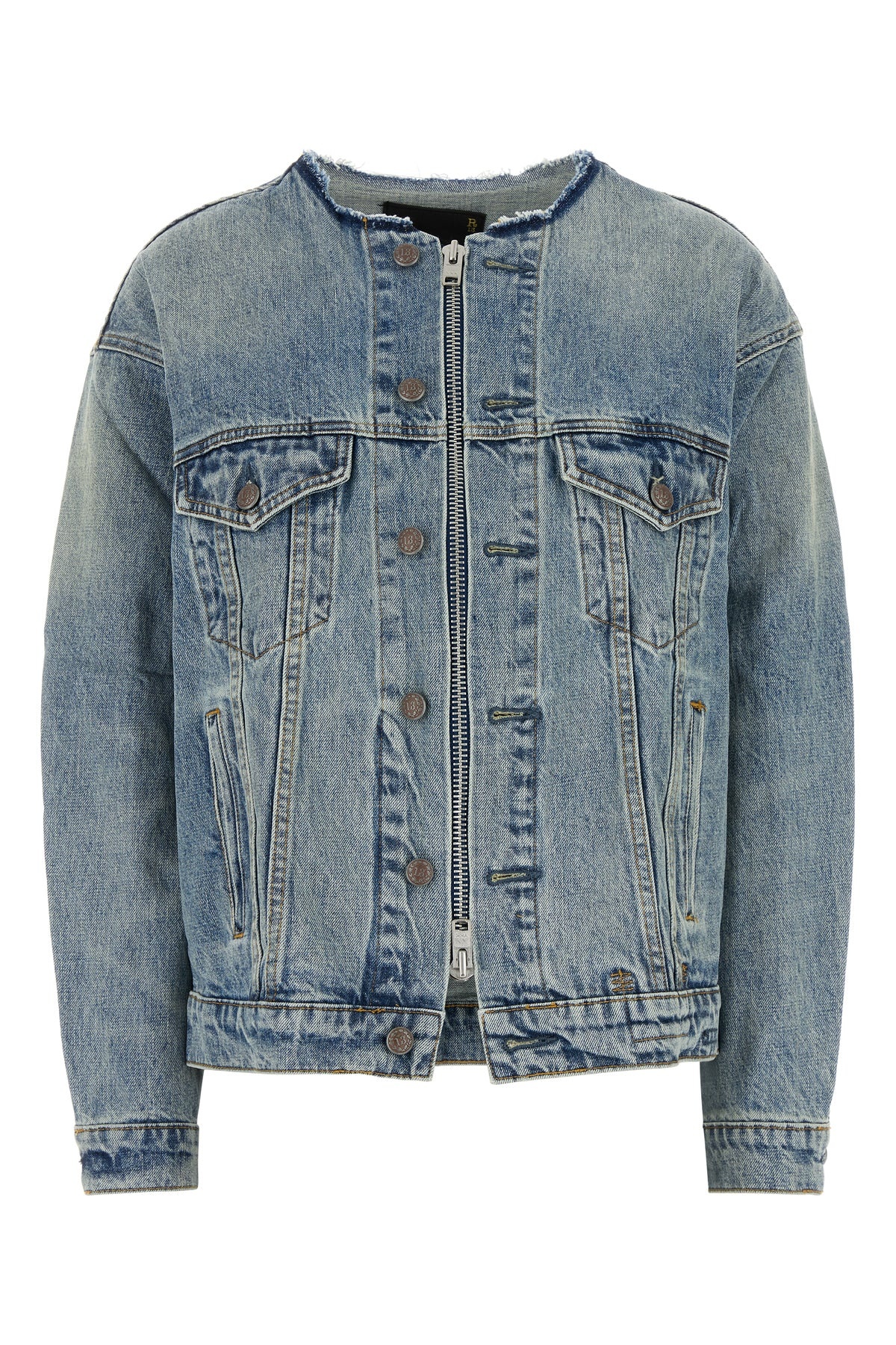 Jacket realized in stonewashed pure cotton denim characterized by distressed crew-neck. - Zip closure - Two flap pockets and two slit pockets at the front - Buttoned cuffs - Adjustable straps on the hemline - Unlined DETAILS Denim jacket Exterior: 100% Cotton Made in china Sample size: S