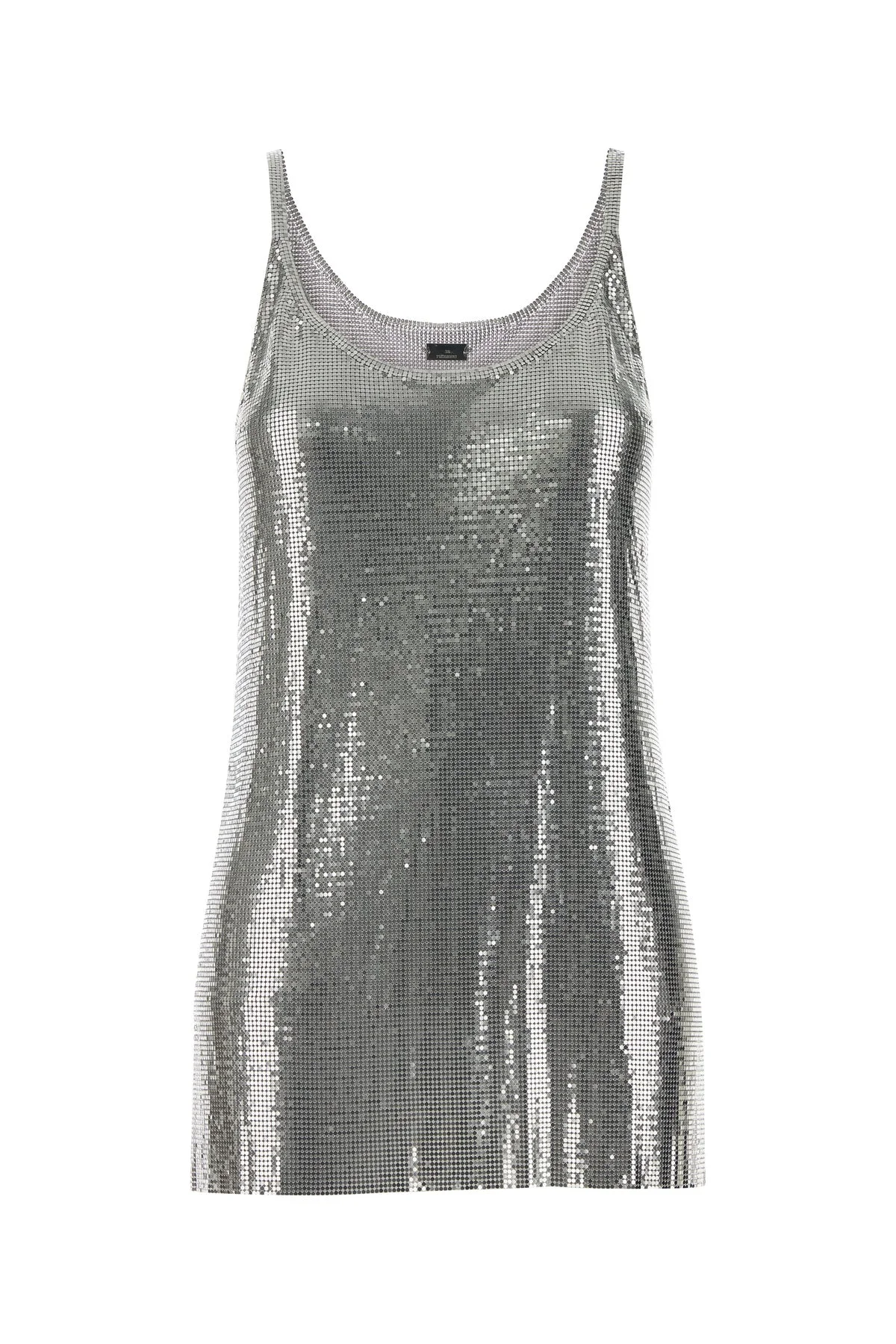 Top realized in metal knit. - Round neckline - Thin shoulder straps - Lateral slits on the hemline DETAILS Silver metal knit top Exterior: 100% Aluminium Made in madagascar Sample size: 38