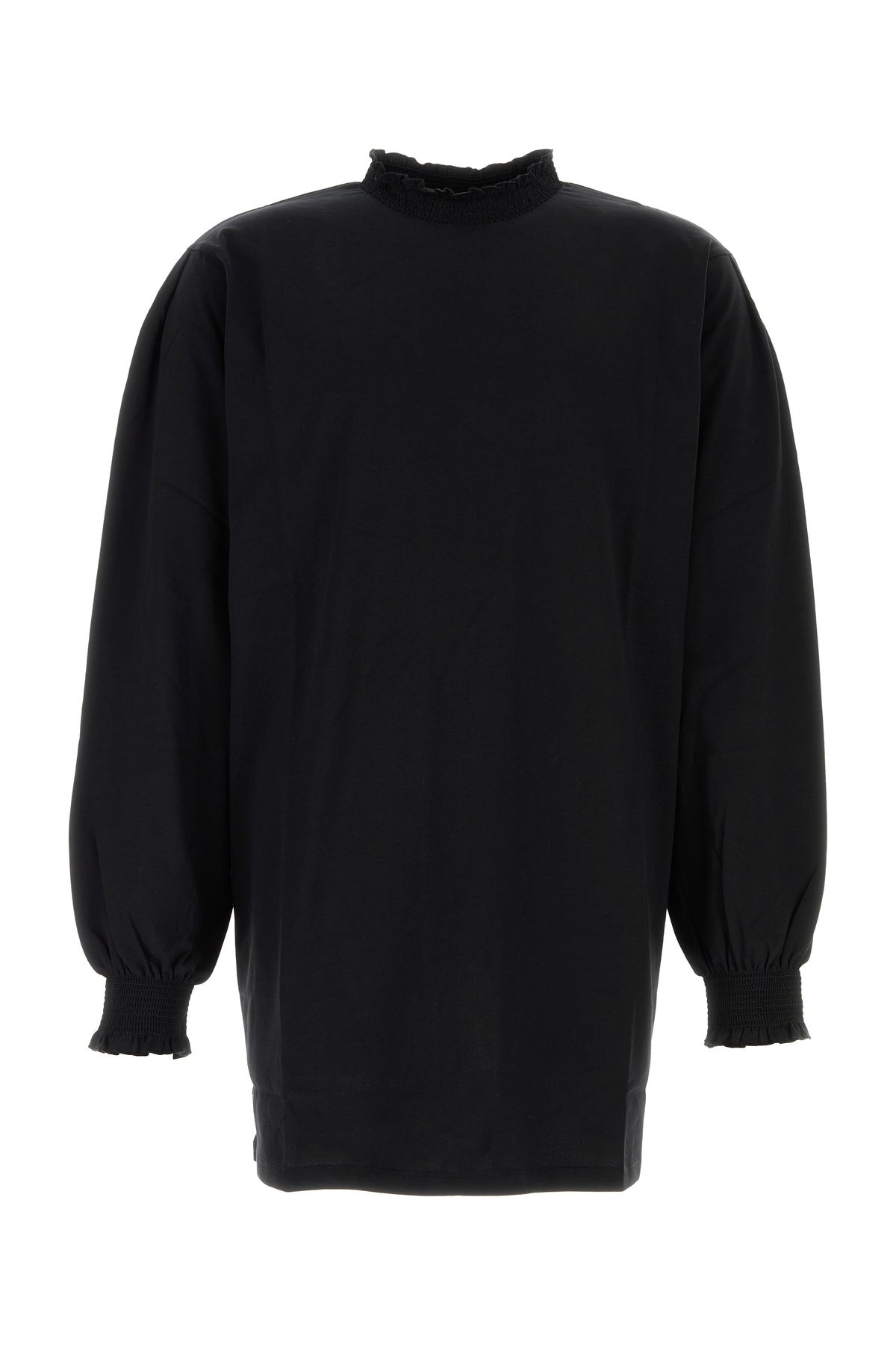Long-sleeves t-shirt realized in pure organic cotton characterized by tonal embroidered logo at the back. - Ribbed cuffs and hemline with ruffles - Loose fit DETAILS Exterior: 100% Organic cotton Made In Portugal Sample size: M