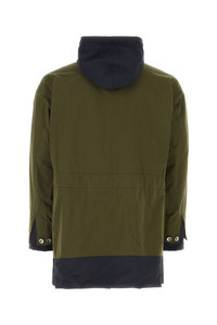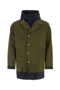 Reversible jacket realized in cotton and nylon characterized by lapels. - Drawstring hood - Concealed zip and visible button closure - Chest pockets and two flap pockets at the front - Inner drawstring at the waist - Adjustable cuffs with buttons - Contrasting interior with four flap pockets DETAILS Exterior: 50% Cotton 50% Nylon Lining: 100% Polyester Made In Japan Sample size: 1