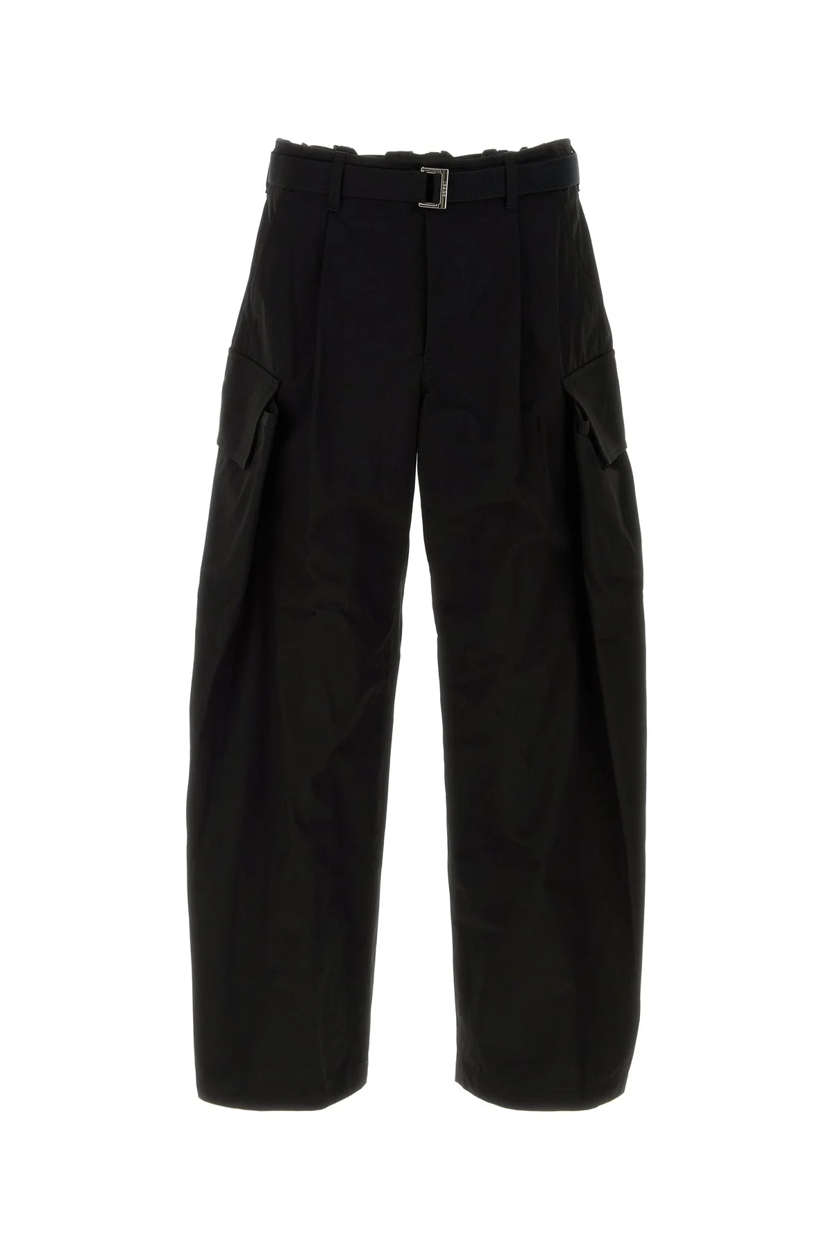 Cargo pant realized in cotton and nylon enriched by detachable belt with metal logoed buckle. - Belt loops at the waist - Concealed zip and a single visible button closure - Slant pockets, two cargo pockets on the sides and two slit pockets at the back DETAILS Black cotton blend cargo pant Exterior: 53% Cotton 47% Nylon Made in japan Sample size: 3