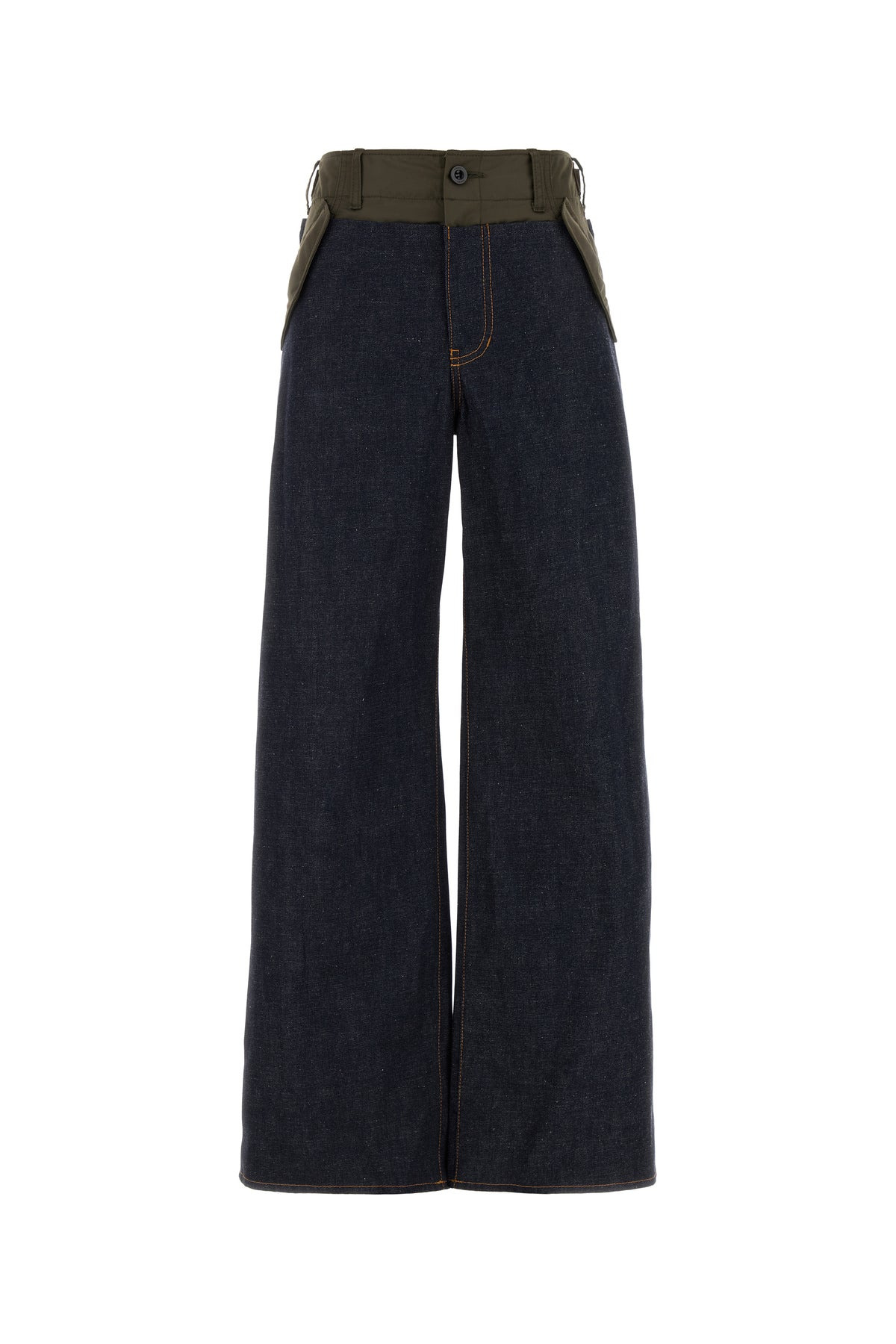 Jeans realized in pure cotton denim with contrasting nylon inserts at the top. - Belt loops at the waist - Concealed zip and single visible button closure -Two flap pockets at the front and two patch pockets at the back DETAILS Denim jeans Exterior: 100% Cotton 100% Nylon Made in japan Sample size: 1