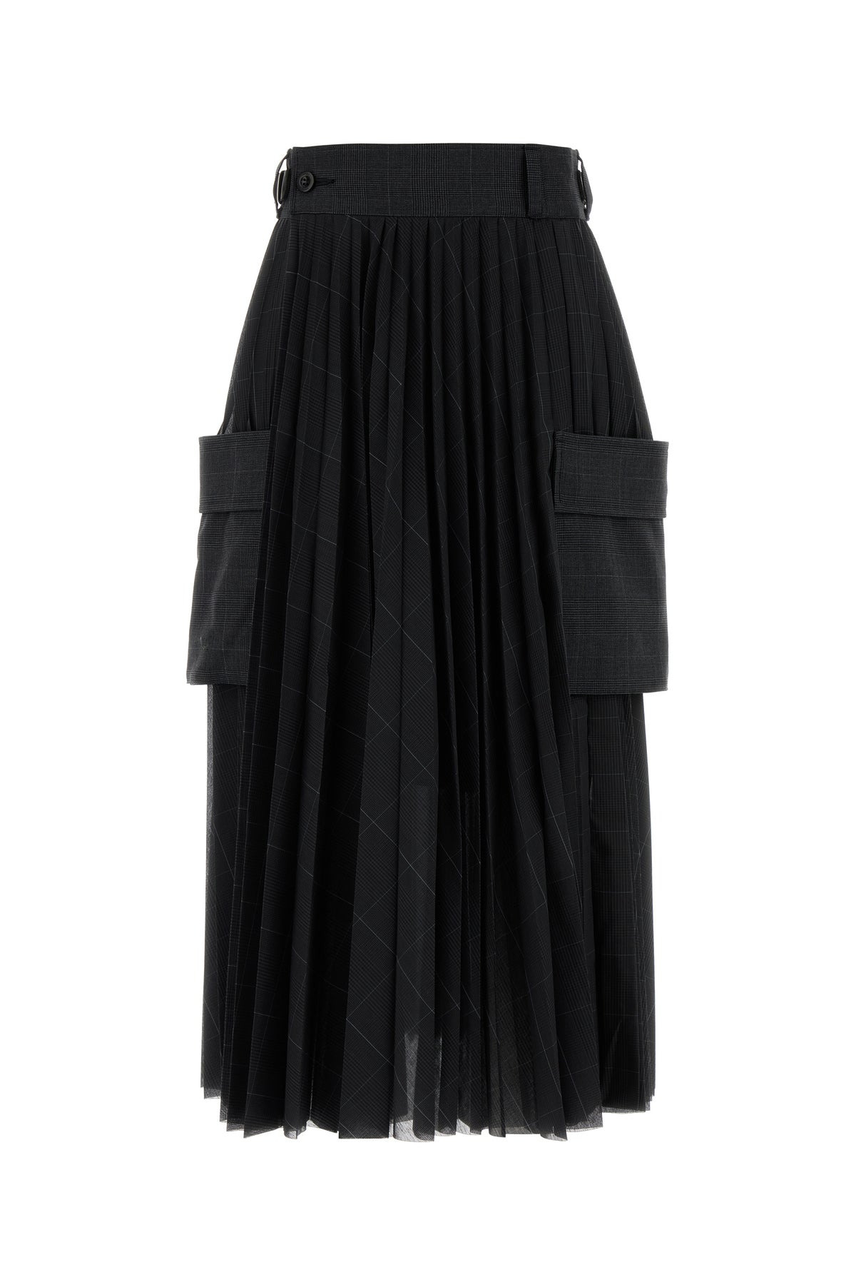 Pleated skirt realized in polyester characterized by checked embroidery on the entire surface. - Belt loops at the waist - Wrap closure by button - Two patch pockets on the sides - Partially lined DETAILS Embroidered polyester skirt Exterior: 100% Polyester Lining: 100% Cupro Made in japan Sample size: 1