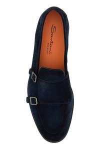 Men's blue suede double-buckle loafer