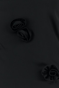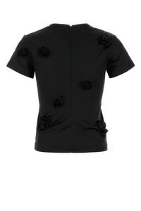 T-shirt realized in satin enriched by tonal floral embellishments on the entire surface. - Crew-neck - Concealed zip closure at the back - Lined DETAILS Black satin Mendoza t-shirt Exterior: 74% Acetate 23% Nylon 3% Elastane Lining: 68% Acetate 32% Polyester Made in Sample size: 38