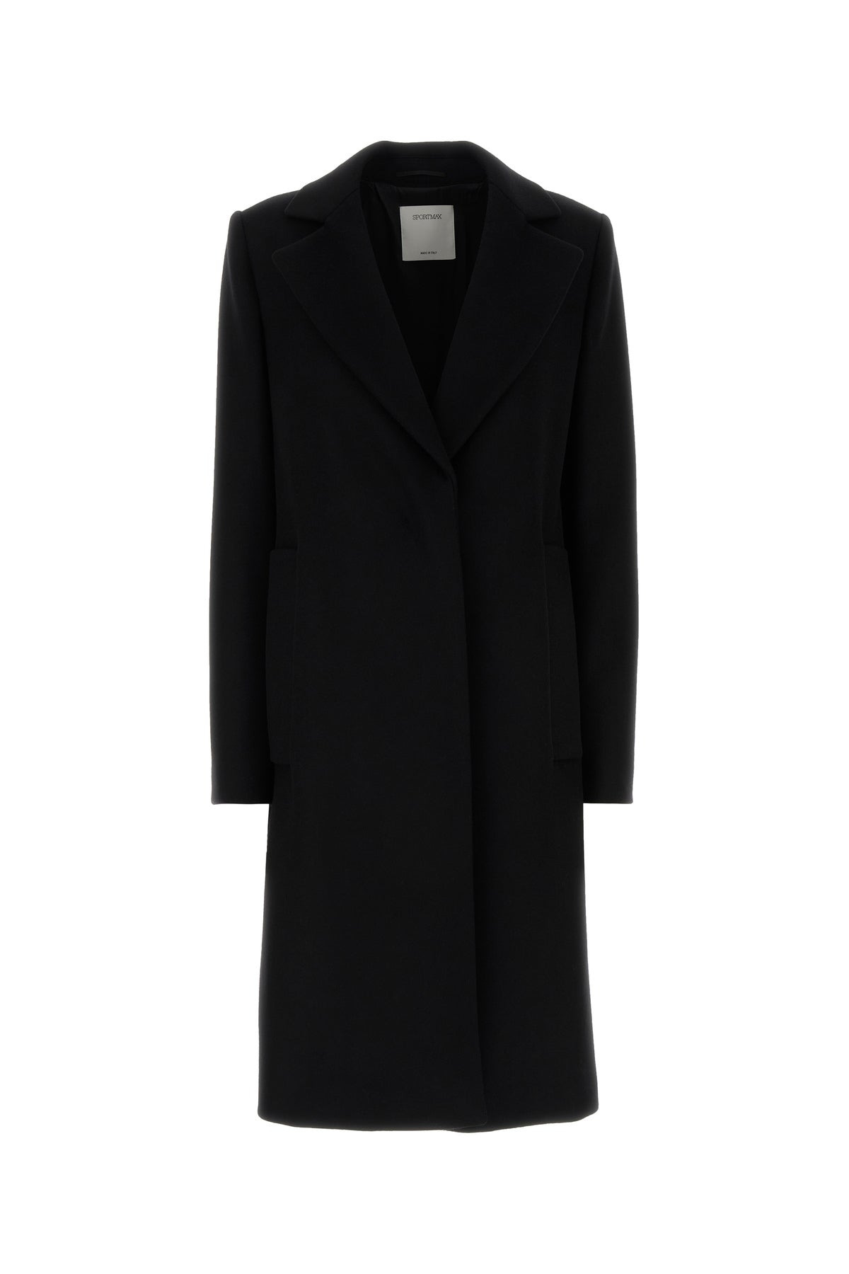 Coat realized in pure virgin wool characterized by lapels. - Concealed buttons closure - Two slit pockets at the front - Lateral slits on the cuffs - Central slit at the back - Lined DETAILS Black wool coat Exterior: 100% Virgin wool Lining: 50% Acetate 50% Viscose Made in italy Sample size: 40
