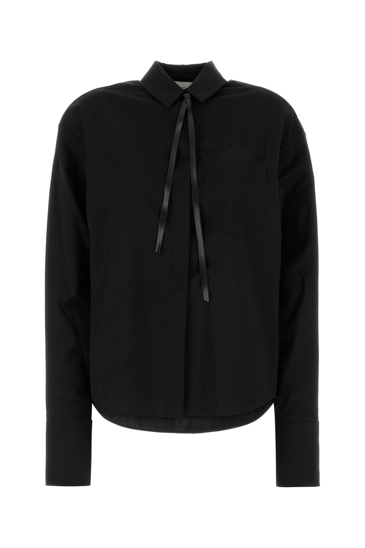 Shirt realized in pure virgin wool enriched by tonal patch on the chest. - Short-Pointed collar - Concealed buttons closure - A chest pocket - Rounded cuffs with button - Rear yoke and placket DETAILS Black wool Mappa shirt Exterior: 100% Virgin wool Made in Sample size: 38