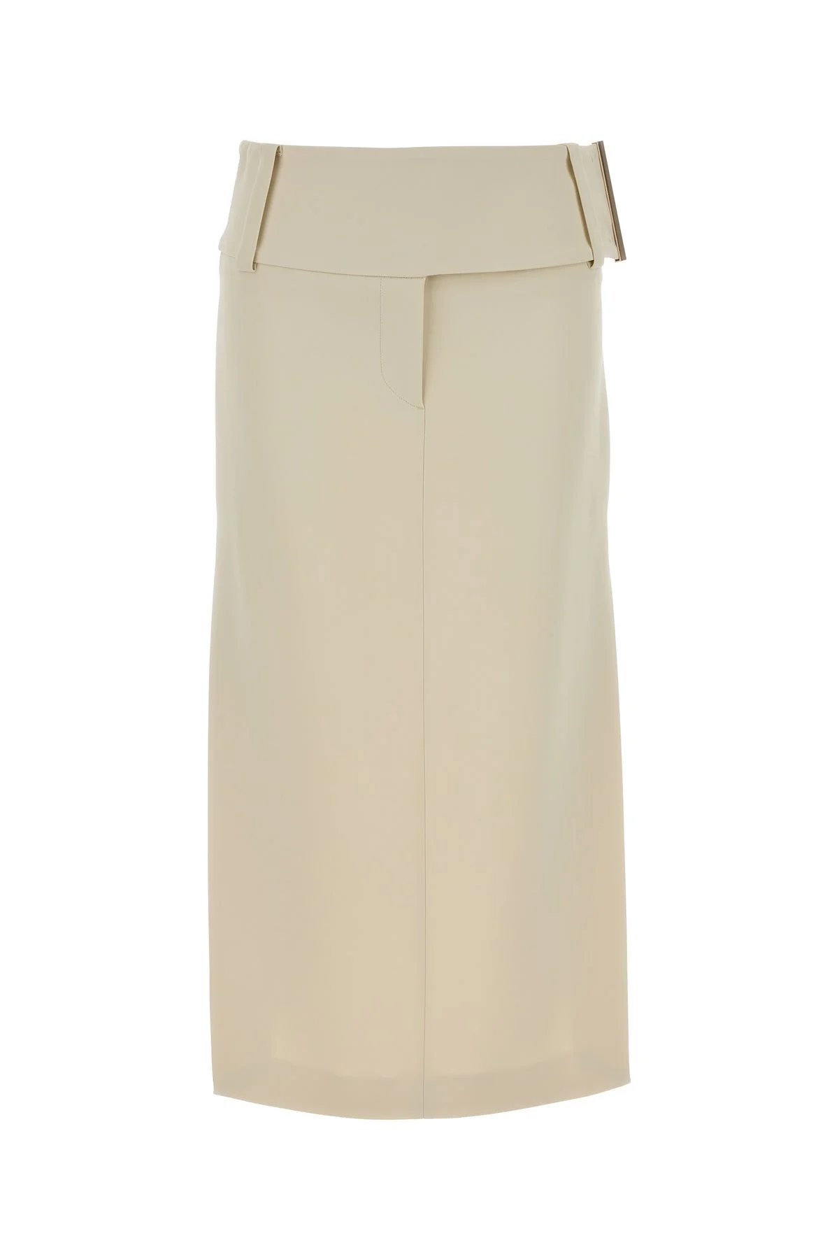 Skirt realized in stretch viscose characterized by deep lateral slits on the hemline. - Belt loops at the waist - Concealed zip and hook closure - Unlined DETAILS Ivory stretch viscose Fronda skirt Exterior: 97% Viscose 3% Elastane Made in Sample size: 38