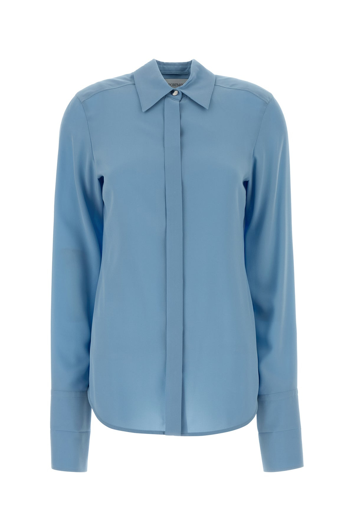 Shirt realized in pure silk crepe. - Short-pointed collar - Concealed buttons closure - Buttoned angle cuffs - Rear yoke and rear placket DETAILS Light-blue crepe Circolo shirt Exterior: 100% Silk Made in Sample size: 38