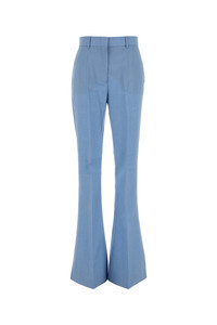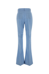 Flared leg pant realized in virgin wool blend characterized by central ironed pleats. - Belt loops at the waist - Concealed zip and hook closure - Slant pockets and two slit pockets at the back DETAILS Light blue wool blend Aeroso1234 pant Exterior: 46% Virgin wool 30% Mohair 24% Polyester Made in Sample size: 38