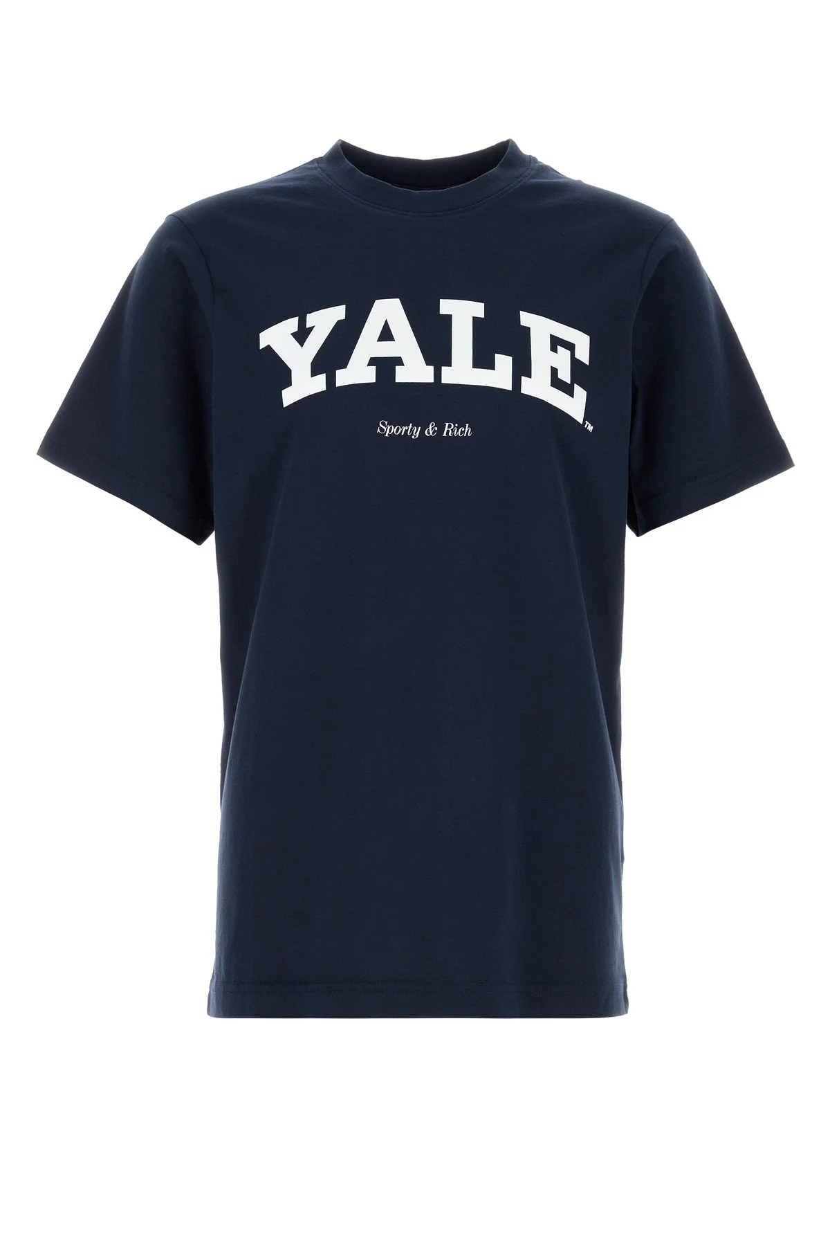 T-shirt realized in pure cotton characterized by Yale print at the front. - Ribbed crew-neck DETAILS Navy blue cotton t-shirt Exterior: 100% Cotton Made in portugal Sample size: M