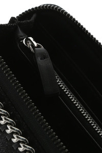 Wallet realized in shaggy deer enriched by metal chain trimming. - Zip around closure - Interior with a zip pocket, two bill compartments, two slit pockets and eight credit card slots DETAILS Exterior: 100% Polyester Finishing: Ruthenium Made in Italy Width: 19 cm Height: 10 cm Depth: 3,5 cm