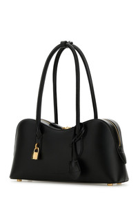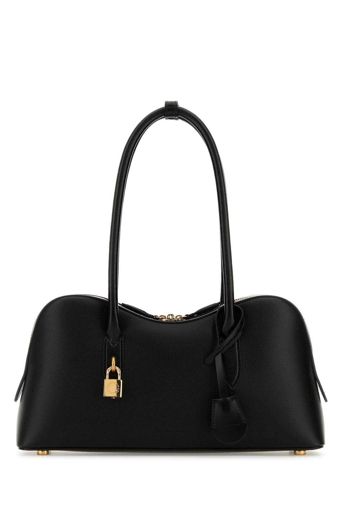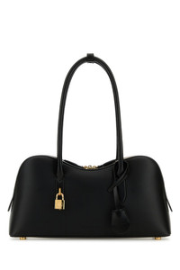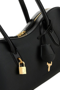 Shoulder bag realized in synthetic leather characterized by embossed logo enriched by logoed padlock at the front. - Tow round handles - Zip closure - Lined interior with a patch pocket - Protective metal feet at the base DETAILS Black synthetic leather Ryder medium shoulder bag Exterior: 50% Nylon 50% Polyester Lining: 100% Leather Finishing: Golden metal Made in Width: 36 cm Height: 17,5 cm Depth: 10 cm Handle height: 21 cm
