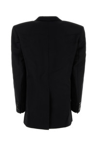 Blazer realized in pure wool characterized by padded shoulders. - Peak lapels - Single-breasted closure by button - A chest pocket and two flap pockets at the front - Four buttons on the sleeves - Central slit at the back - Lined interior with a slit pocket DETAILS Black wool blazer Exterior: 100% Wool Lining: 52% Viscose 48% Cotton Made in poland Sample size: 38