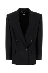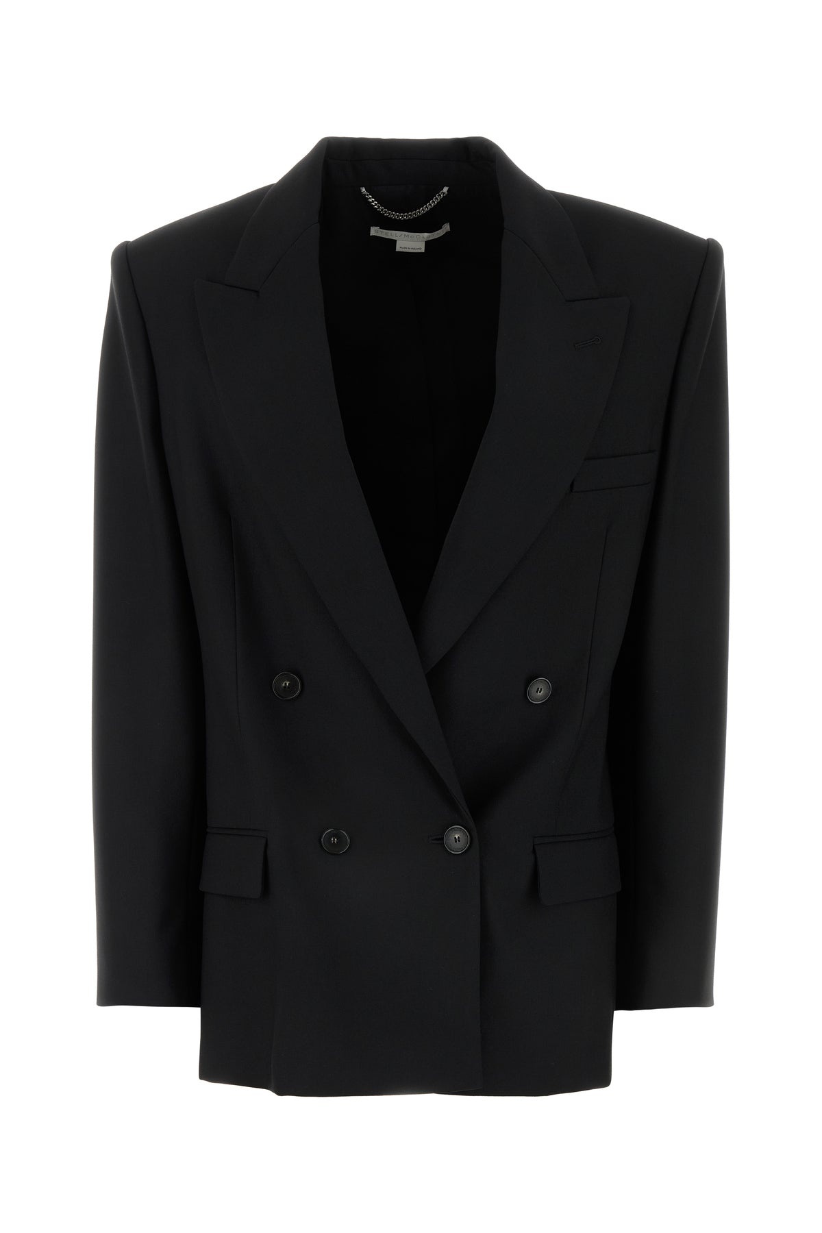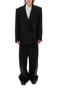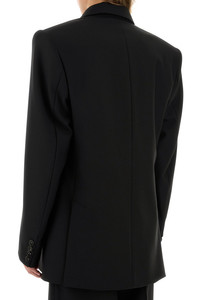 Oversize blazer realized in pure wool characterized by peak lapels. - Padded shoulder - Double-breasted closure by buttons - A chest pocket and two flap pockets at the front - Four buttons on the sleeves - Lined interior with a slit pocket DETAILS Black wool blazer Exterior: 100% Wool Lining: 52% Viscose 48% Cotton Made in poland Model is 175 cm and is wearing a size 38