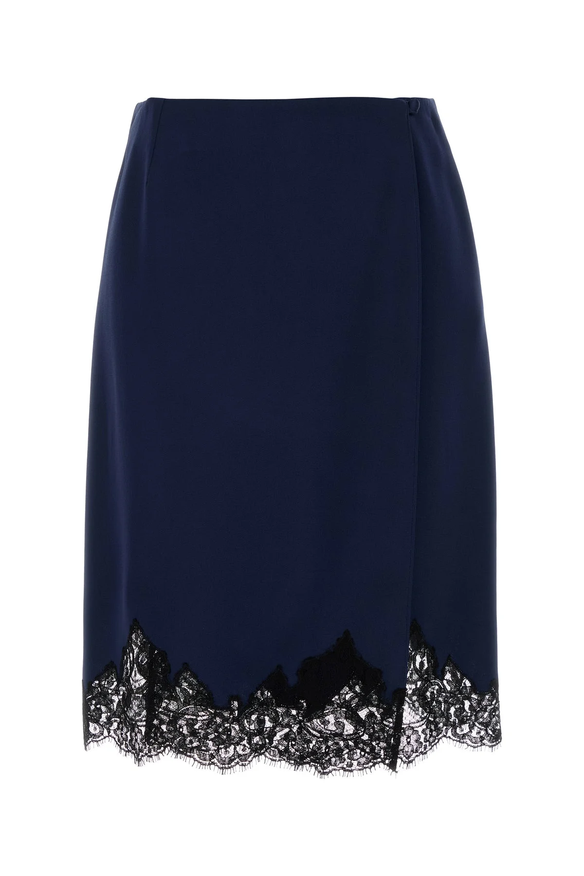 Midi-length skirt realized in satin enriched by contrasting lace insert on the hemline. - Wrap closure by buttons - Unlined DETAILS Blue satin skirt Exterior: 73% Acetate 27% Viscose Made in italy Model is 170 cm and is wearing a size 40