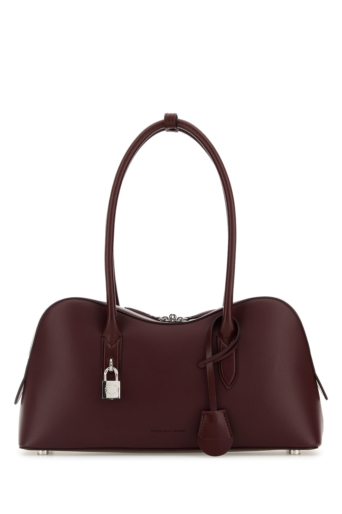 Shoulder bag realized in synthetic leather characterized by embossed logo enriched by logoed padlock at the front. - Tow round handles - Zip closure - Lined interior with a patch pocket - Protective metal feet at the base DETAILS Burgundy synthetic leather Ryder medium shoulder bag Exterior: 50% Nylon 50% Polyester Lining: 100% Leather Finishing: Golden metal Made in Width: 36 cm Height: 17,5 cm Depth: 10 cm Handle height: 21 cm