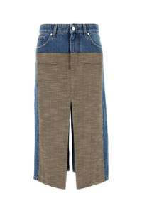 Skirt realized in pure cotton denim with tweed insert at the front. - Belt loops at the waist - Concealed zip and single visible button closure - Five classic pockets - Central slit at the front and at the back - Unlined DETAILS Denim skirt Exterior: 100% Cotton Made in italy Sample size: XS