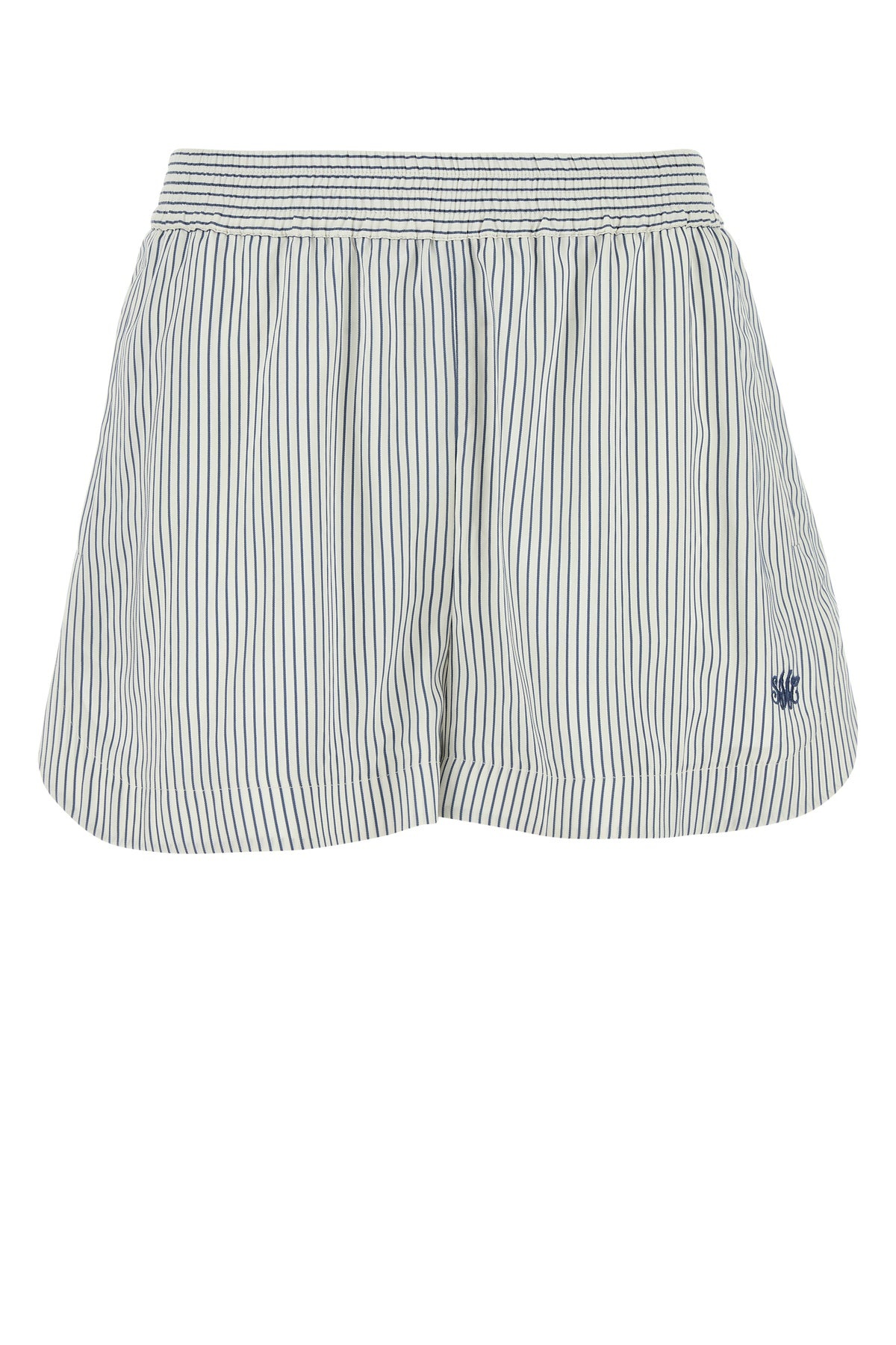 Shorts realized in pure silk characterized by striped embroidery on the entire surface and embroidered logo on the hemline. - Elastic waist - Two slit pockets at the front - Lateral slits on the hemline DETAILS Embroidered silk shorts Exterior: 100% Silk Made in romania Sample size: 38