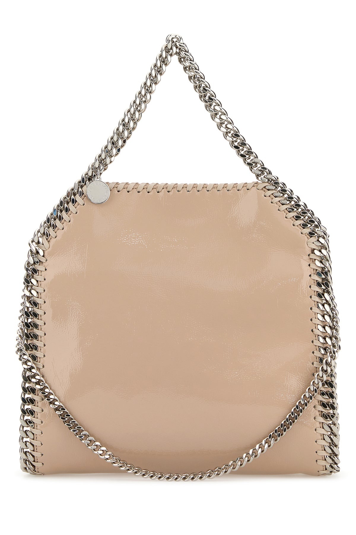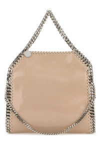 Handbag realized in patent shaggy deer characterized by metal chain trimmings. - Two metal chain handles with logoed charm - Metal chain shoulder strap - Magnetic button closure - Lined interior with a patch pocket DETAILS Powder pink shaggy deer mini Falabella handbag Exterior: 100% Polyester Lining: 100% Fabric Finishing: Silver metal Made in italy Width: 26,5 cm Height: 25 cm Depth: 5 cm Handle height: 12,5 cm Max shoulder strap length: 47 cm