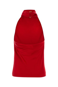 Draped top realized in satin. - Halter neckline - Backless - Snap-fit closure at the back DETAILS Red satin top Exterior: 73% Acetate 27% Viscose Made in italy Sample size: 38