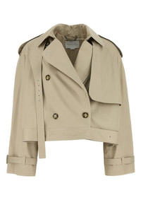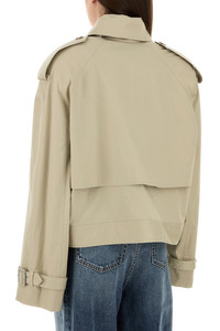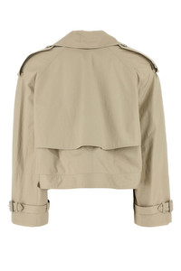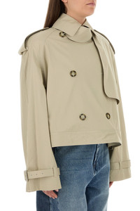 Short-cut trench coat realized in pure cotton enriched by adjustable belt on the hemline. - Lapels - Epaulettes - Buttons closure at the front - Seam pockets - Adjustable straps on the cuffs - Storm shield - Lined DETAILS Sand cotton trench coat Exterior: 100% Cotton Lining: 52% Viscose 48% Cotton Made in hungary Model is 170 cm and is wearing a size 40