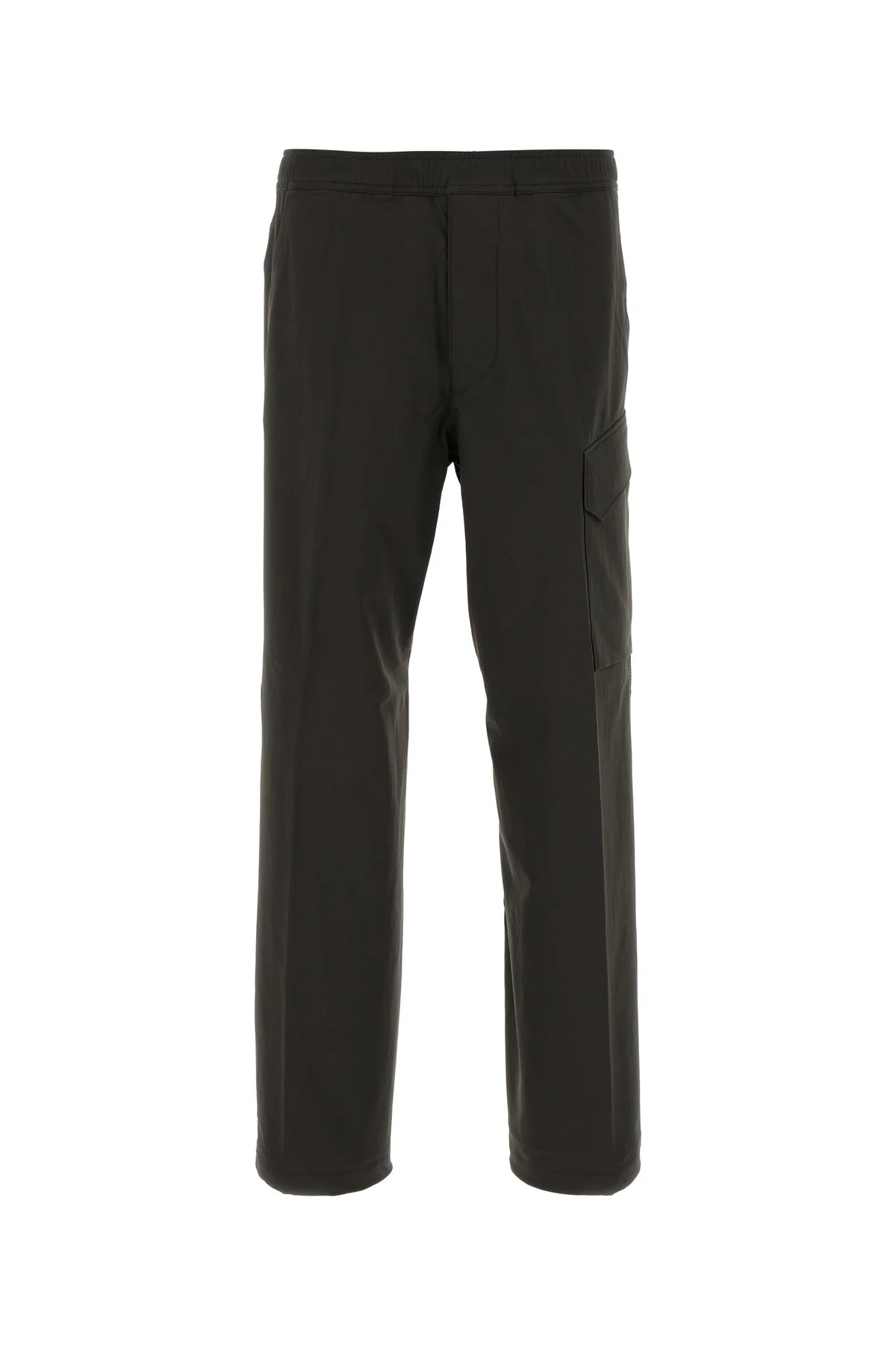 Pant realized in stretch nylon characterized by embroidered logo at the back. - Elastic waist - Opening with zip at the front - Slant pockets, a flap pocket on the side and a zip pocket at the back - Central ironed pleats DETAILS Charcola stretch nylon pant Exterior: 91% Nylon 9% Elastane Made in vietnam Sample size: 31