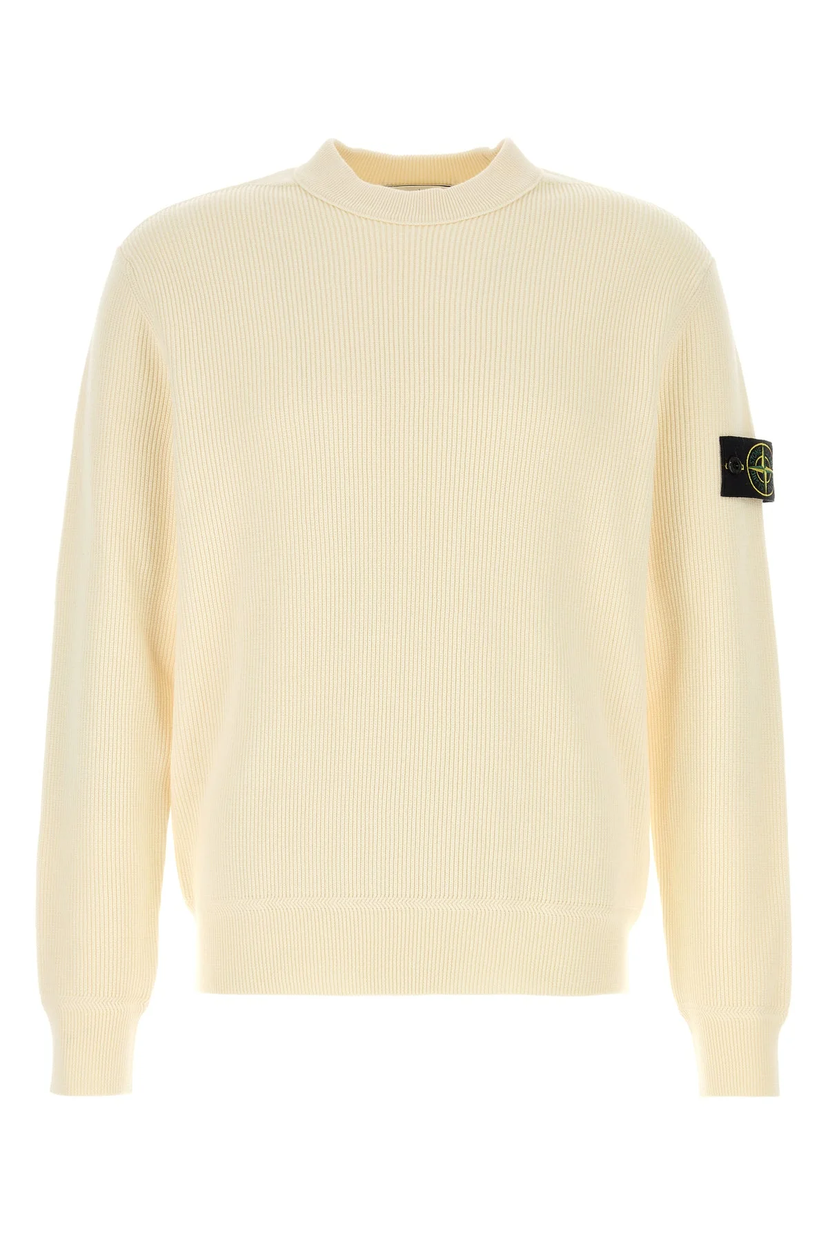 Sweater realized in pure cotton enriched by detachable logoed patch on the sleeve. - Ribbed crew-neck, cuffs and hemline DETAILS Ivory cotton sweater Exterior: 100% Cotton Made in Sample size: M