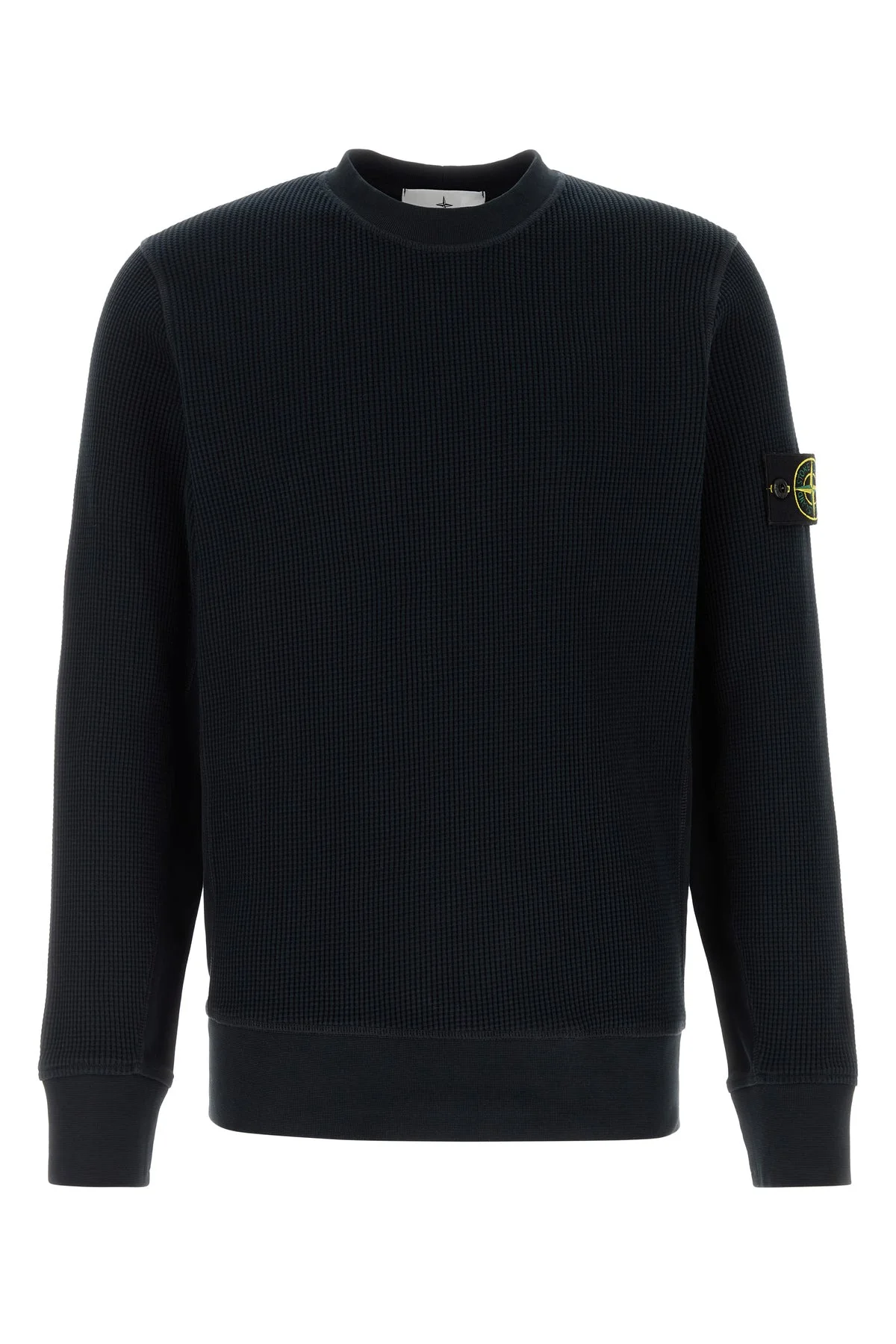 Sweatshirt realized in pure cotton enriched by detachable logoed label on the sleeve. - Ribbed crew-neck, cuffs and hemline DETAILS Midnight blue cotton sweatshirt Exterior: 100% Cotton Made in moldova Sample size: M