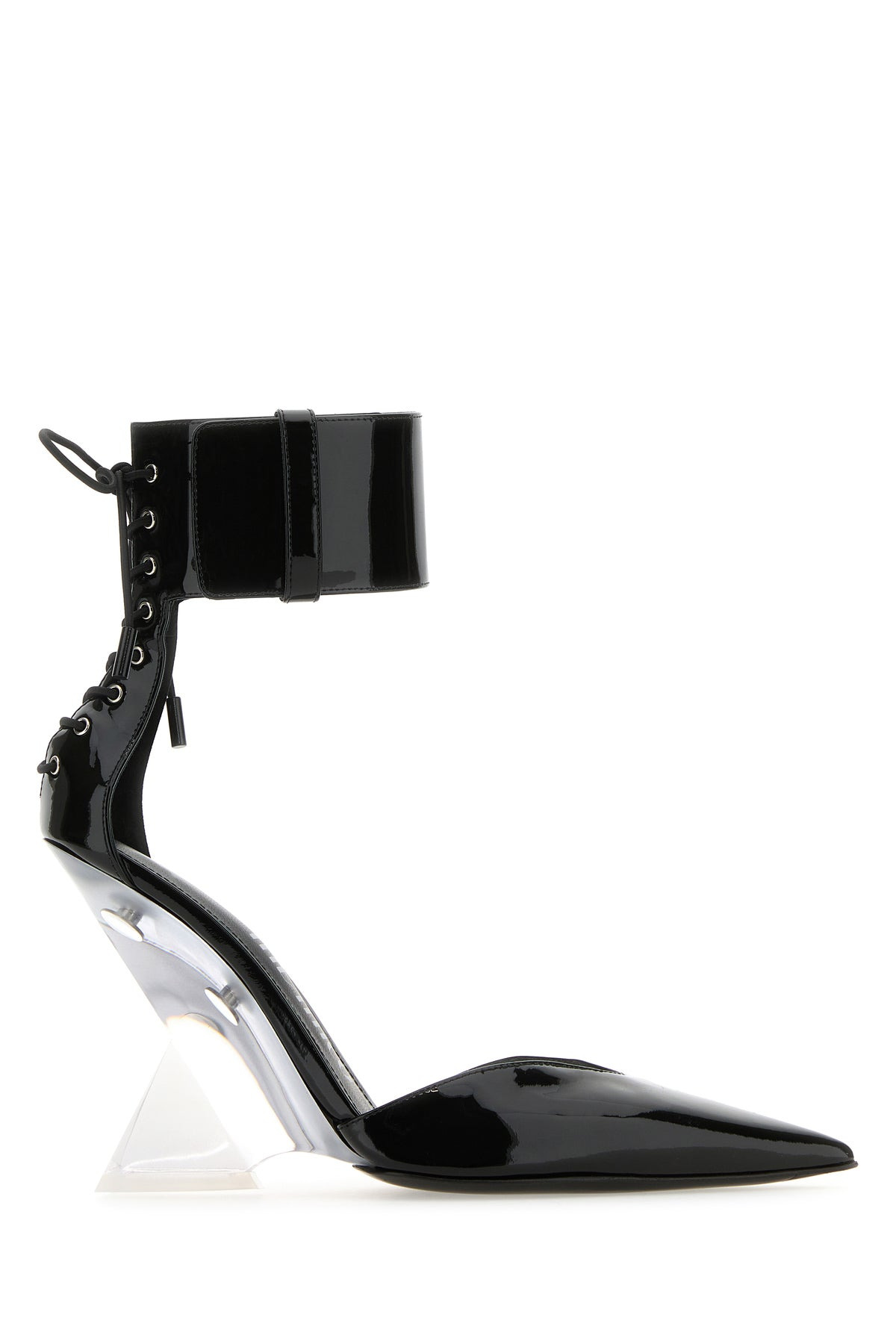 Pumps realized in patent leather characterized by adjustable ankle velcro strap closure and laces to tie at the back. - Pointed toe - Printed logo on the inside - Peculiar heel DETAILS Exterior: 100% Leather Interior: 100% Leather Sole: Leather and rubber Made In Italy Heel height: 10,5 cm