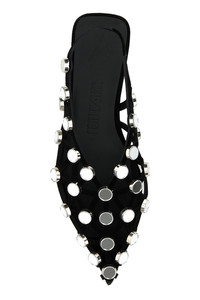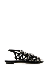 Ballerinas realized in suede characterized by cut-out details on the entire surface enriched by peculiar embellishments on the entire surface. - Pointed toe - Partial elastic ankle strap - Embossed logo on the inside DETAILS Black suede Grid ballerinas Exterior: 100% Suede Interior: 100% Leather Sole: Leather Made in italy