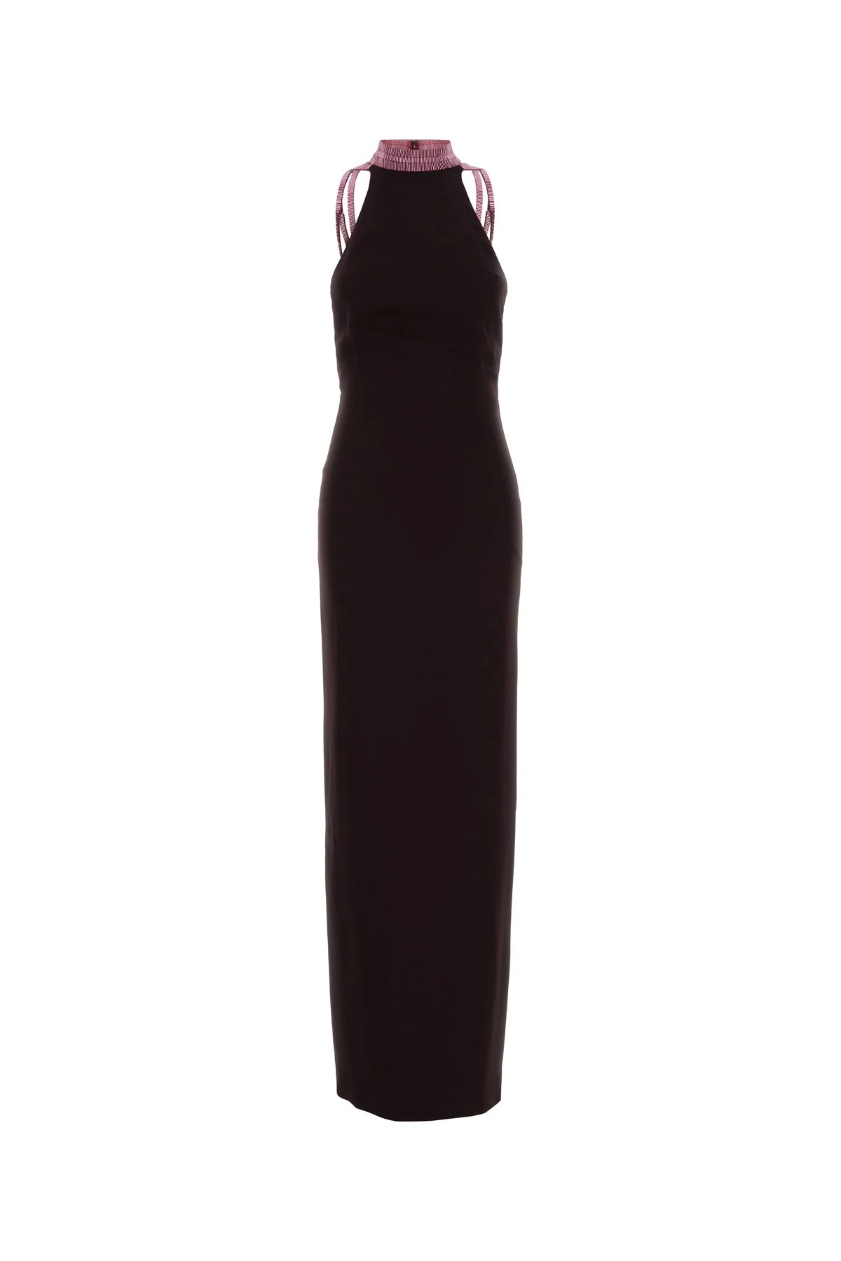Long dress realized in stretch viscose crepe enriched by jewel embellishments and logoed label at the back. - Jewel collar with concealed hooks - Halter neckline - Backless - Concealed zip closure at the back - Central slit at the back - Lined DETAILS Purple stretch crepe long dress Exterior: 94% Viscose 6% Elastane Lining: 65% Acetate 35% Polyester Made in italy Model is 170 cm and is wearing a size 38