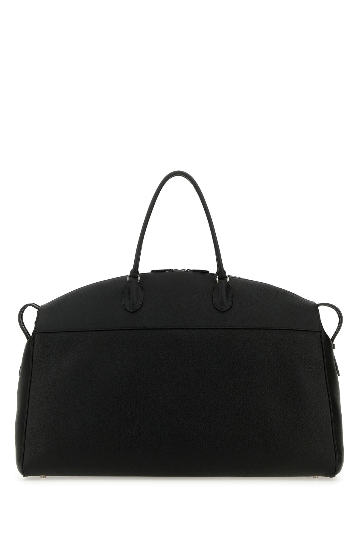 Travel bag realized in pebble calf leather. - Two tonal leather flat handles - Adjustable detachable tonal leather shoulder strap - Zip closure - Lined interior with a zip pocket and a slit pocket - Protective metal feet at the base DETAILS Exterior: 100% Calf Lining: 100% Leather Finishing: Ruthenium Made In Italy Width: 56,5 cm Height: 36 cm Depth: 27 cm Handle height: 18 cm Min shoulder strap length: 31 cm Max shoulder strap length: 39 cm
