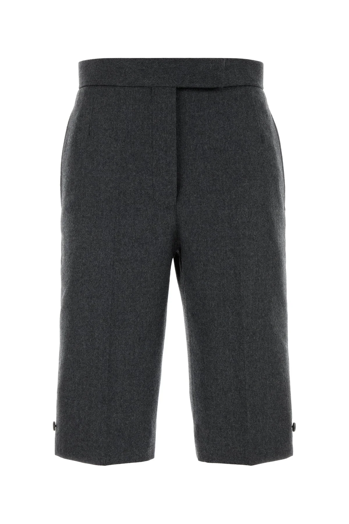 Bermuda shorts realized in pure wool enriched by iconic tricolor label at the back. - Adjustable strap at the back - Concealed buttons and hooks closure - Seam pockets and two slit pockets at the back - Buttoned lateral slits on the hemline DETAILS Graphite wool bermuda shorts Exterior: 100% Wool Made in japan Sample size: 38