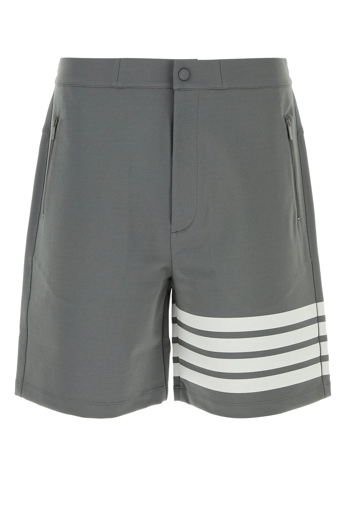 Bermuda shorts realized in stretch jersey characterized by contrasting bands on the hemline enriched by iconic tricolor label at the back. - Partially elastic waist - Concealed zip and snap button closure - Two zip pockets at the front and a zip pocket at the back DETAILS Grey stretch jersey bermuda shorts Exterior: 73% Viscose 23% Nylon 4% Elastane Made in italy Sample size: 3
