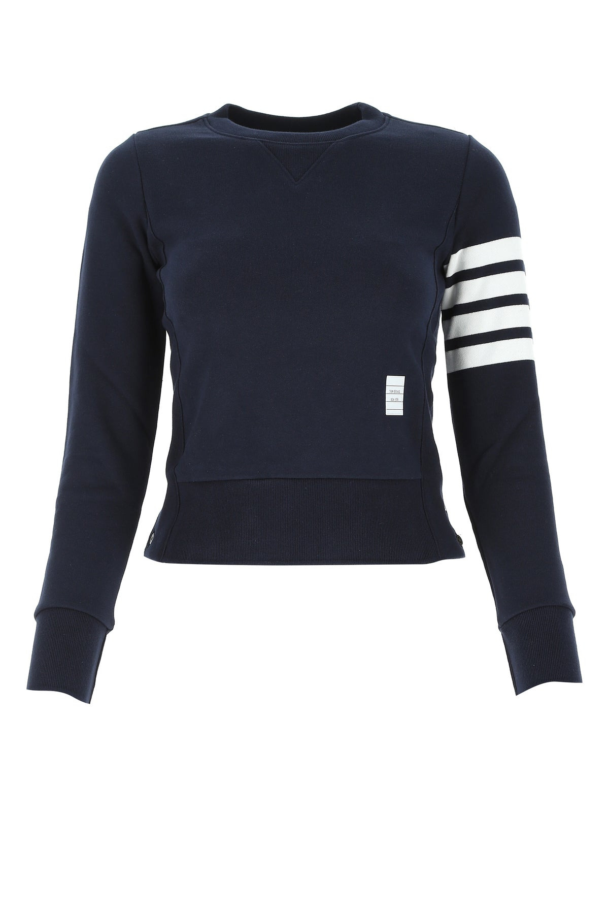 Sweatshirt realized in pure cotton characterized by contrasting printed bands on the sleeve enriched by logoed patch at the front and iconic tricolor label at the back. - Ribbed crew-neck, cuffs and hemline - Lateral slits with buttons on the hemline DETAILS Exterior: 100% Cotton Made In Japan Sample size: 38 Shoulders: 32 cm Chest: 39 cm Sleeves: 72 cm Total: 48 cm