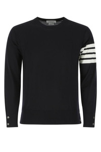Navy Milano Stitch Fine Merino Wool 4-Bar Crew Neck Pullover