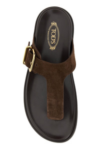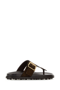 Thong slippers realized in suede characterized by adjustable buckle on the instep. - Round toe - Printed logo on the inside DETAILS Brown suede thong slippers Exterior: 100% Suede Interior: 100% Leather Sole: Rubber Made in italy