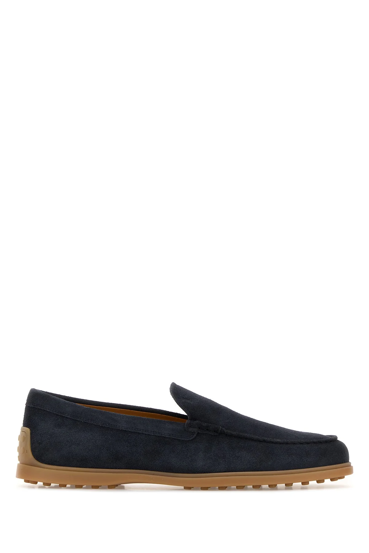 Loafers realized in suede characterized by logo in relief at the back. - Round toe - Embossed logo on the inside - Contrasting sole DETAILS Navy blue suede loafers Exterior: 100% Suede Interior: 100% Leather Sole: Rubber Made in italy