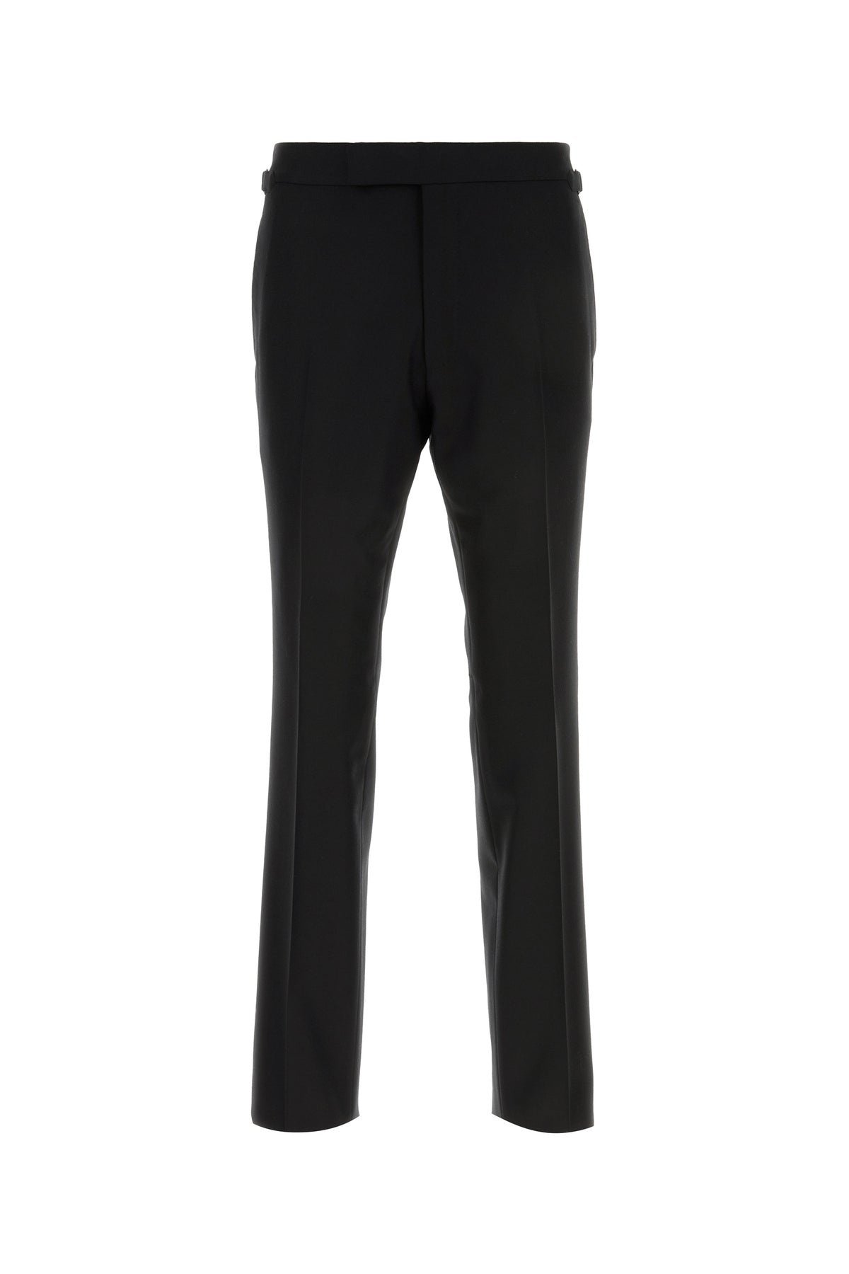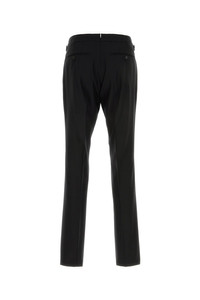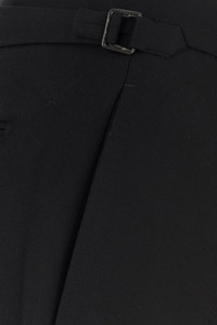 Pant realized in stretch wool characterized by central ironed pleats. - Adjustable straps at the waist - Concealed zip and hooks closure - Slant pockets and two slit pockets at the back DETAILS Black stretch wool pant Exterior: 97% Wool 3% Elastane Made in italy Sample size: 48