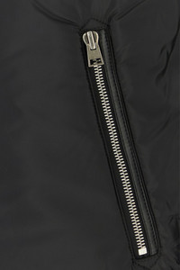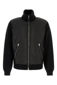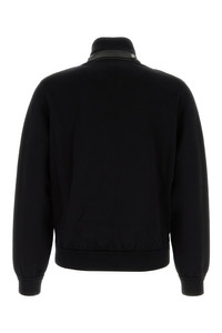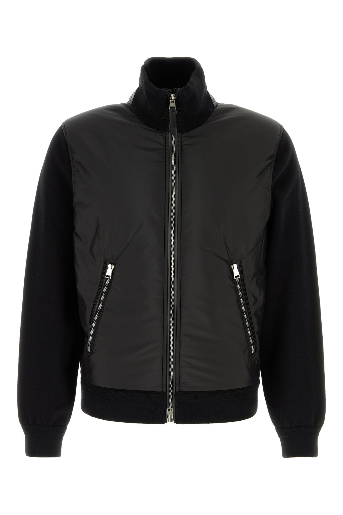 Cardigan realized in wool blend with tonal polyester insert at the front. - Ribbed high neck, cuffs and hemline - Zip closure - Two zip pockets at the front - Partially lined with a zip pocket DETAILS Black wool blend cardigan Exterior: 94% Wool 4% Nylon 2% Elastane 100% Polyester Lining: 100% Polyester Made in italy Sample size: 50