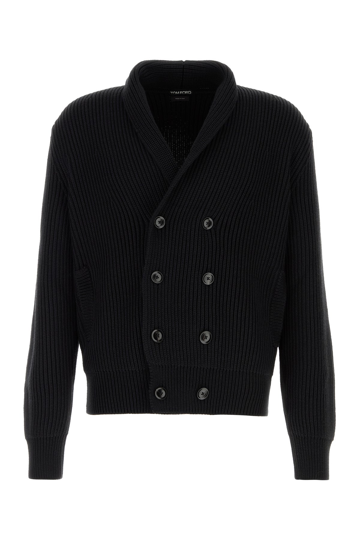 Cardigan realized in wool and silk characterized by lapels. - Buttons closure - Two slit pockets at the front - Ribbed cuffs and hemline DETAILS Black wool blend cardigan Exterior: 70% Wool 30% Silk Made in italy Sample size: 50
