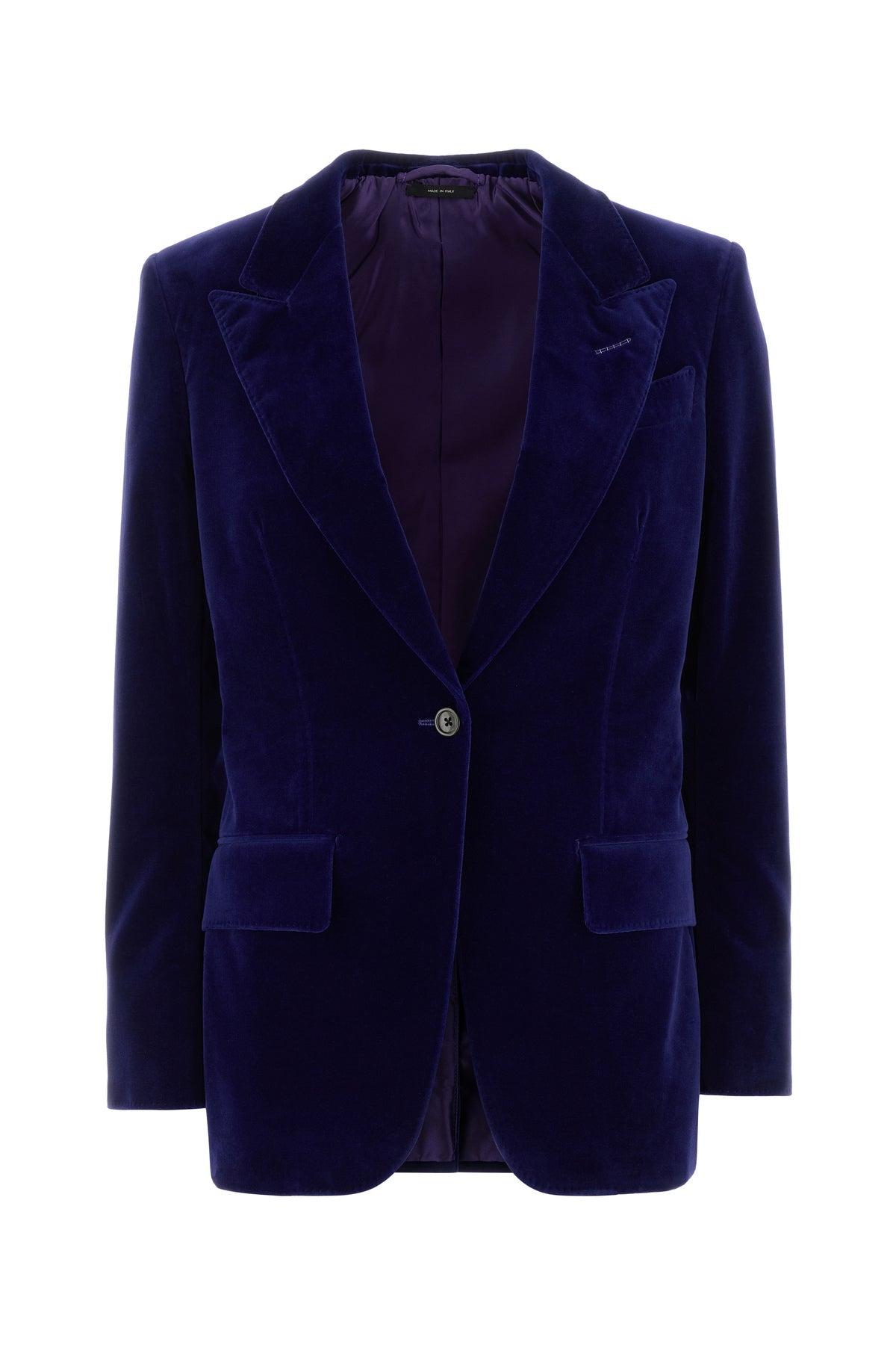 Blazer realizza in stretch cotton velvet characterized by peak lapels. - Single-breasted closure by button - A chest pocket and two flap pockets at the front - Four buttons on the sleeves - Central slit at the back - Lined DETAILS Blue stretch velvet blazer Exterior: 98% Cotton 2% Elastane Lining: 59% Cupro 41% Silk Made in italy Sample size: 40