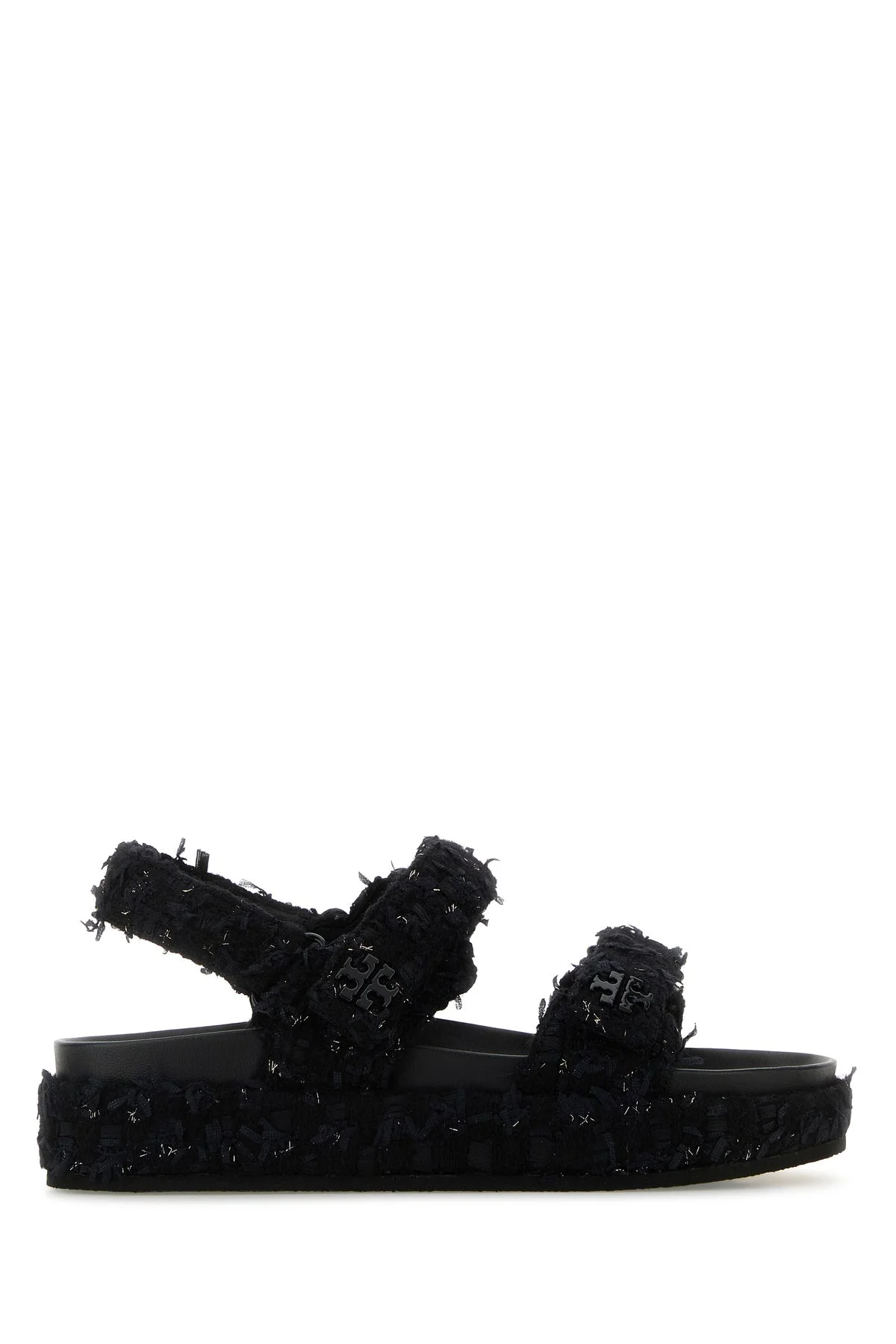 Sandals realized in tweed with lurex threads enriched by logoed metal detail on the instep. - Adjustable ankle strap closure - Round toe - Adjustable straps on the instep - Printed logo on the inside DETAILS Midnight blue tweed sandals Exterior: 100% Fabric Interior: 100% Leather Sole: Rubber Made in vietnam