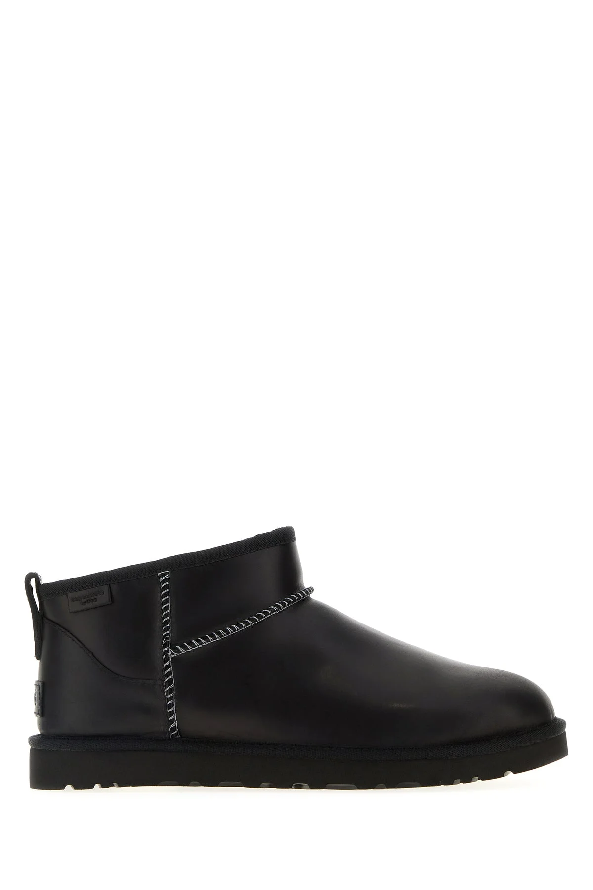 Ankle boots realized in smooth leather enriched by logoed label at the back. - Round toe - Heel pull-tab - Shearling interior DETAILS Black leather Classic Ultra Mini ankle boots Exterior: 100% Leather Interior: 100% Shearling Sole: UGGplush™ Made in vietnam