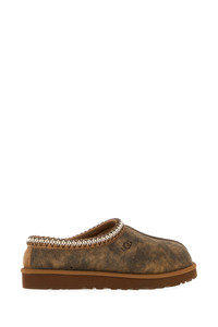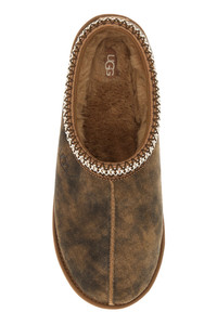 Slippers realized in vintage effect suede characterized by contrasting logo at the front enriched by contrasting trimming. - Round toe - Logoed label on the inside - Shearling interior DETAILS Brown suede Tasman slippers Exterior: 100% Suede Interior: 100% Shearling Sole: UGGplush™ Made in cambodia