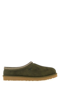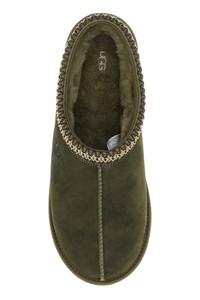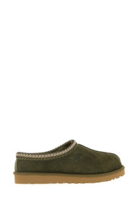 Slippers realized in suede characterized by contrasting logo at the front enriched by contrasting trimming. - Round toe - Logoed label on the inside - Shearling interior DETAILS Olive green suede Tasman slippers Exterior: 100% Suede Interior: 100% Shearling Sole: UGGplush™ Made in vietnam